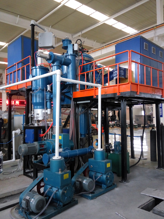 真空感應(yīng)凝鑄爐是利用中頻感應(yīng)加熱原理,在真空或保護(hù)氣氛下,將稀有金屬或特種合金在熔煉坩堝內(nèi)熔化后,澆入凝鑄模具內(nèi),凝鑄模具通過(guò)電阻加熱進(jìn)行恒溫保溫,在恒溫狀態(tài)下,由模具升降機(jī)構(gòu)通過(guò)一定速度緩慢將模具移出保溫感應(yīng)器,通過(guò)模具底部托盤水冷及外部水冷罩將金屬液體冷卻凝固;是為各種稀有金屬及特種合金及其它材料的工業(yè)生產(chǎn)和試驗(yàn)而設(shè)計(jì)的;真空感應(yīng)凝鑄爐還具有傳統(tǒng)鑄錠功能,能實(shí)現(xiàn)緩冷鑄棒和傳統(tǒng)鑄錠的快速切換。